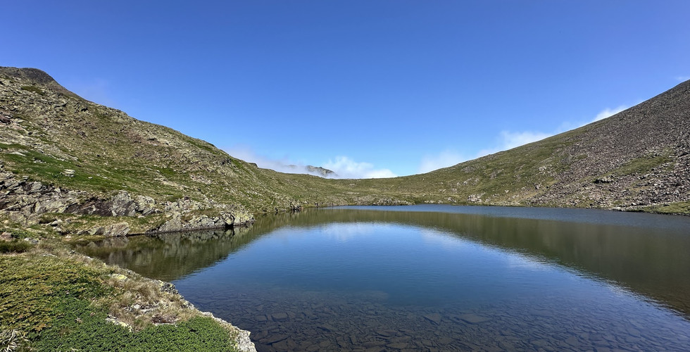 Au matin les lumières sont différentes mais c'est toujours aussi beau ! Nous reprenons la route vers l'étang rond et continuons notre ascension vers le refuge du Mont Valier. Pause déjeuner et grosse sieste pour moi avant de monter le col de Pécouch qui nous amène sur un ancien glacier, c'était assez irréel, la roche et la montagne étaient complètement différentes de ce qu'on a l'habitude de voir ! Et pour finir la journée une descente un peu technique mais pour trouver un spot de bivouac au bord de l'étang de Milouga encore seuls au monde.